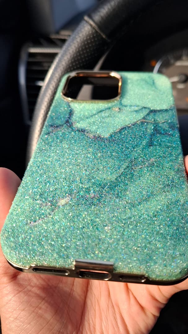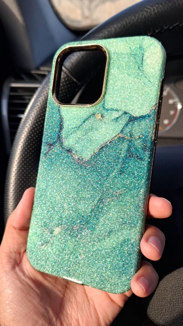 قاب آیفون طرح مرمر سبز براق | مدل Emerald Marble با دور طلایی