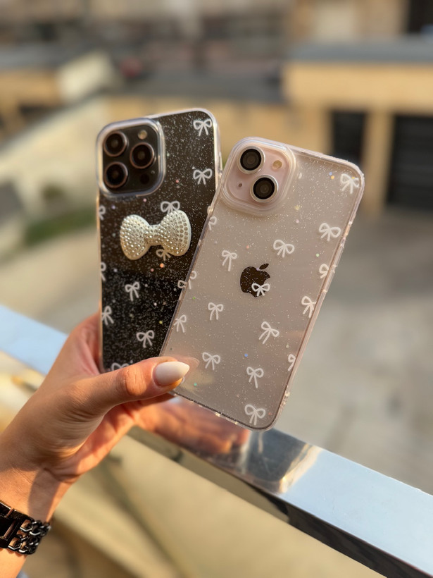 قاب شفاف و اکلیلی با طراحی ظریف پاپیونهای سفید و یک پاپیون برجسته مرواریدی. مناسب برای استایلهای دخترانه و خاصپسند. محافظت کامل و زیبایی بینظیر!