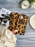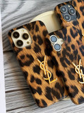 قاب گوشی پلنگی لاکچری با لوگوی فلزی YSL – استایل خاص و جسورانه برای آیفون