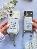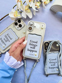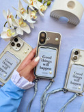 قاب گوشی آیفون جاکارتی‌دار با طرح Good Things و تزئین مرواریدی – طراحی مینیمال لاکچری